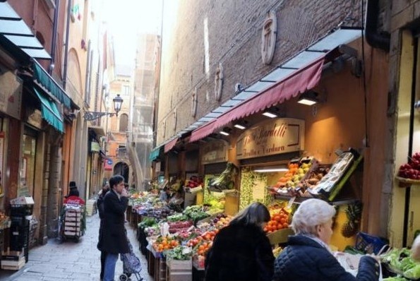 O mercado de Bolonha, chamado de Mercato di Mezzo ou Quadrilatero, é uma área de antiga tradição comercial, que teve seu maior desenvolvimento na Idade Média e que mantém até hoje sua vocação mercantil.