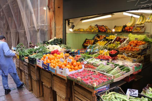 A Via Pescherie (sim, a antiga rua dos peixeiros!) e a Drapperie são as mais animadas: banquinhas de frutas e verduras coloridas espalhadas pelas ruas, odores espalhados pelo ar, vozes dos comerciantes atraindo os clientes para uma degustação…
