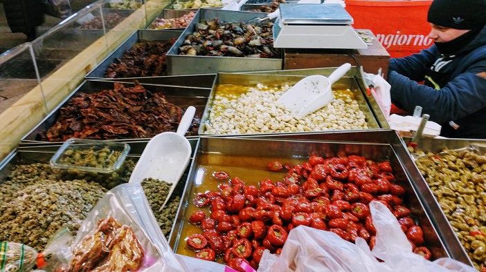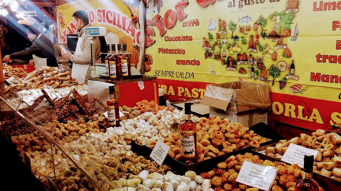 A grande maioria das barracas é de alimentos típicos de várias regiões, transformando a praça em um verdadeiro tour gastronômico pela Itália. A minha preferida é a da Sicília e as fotos são auto explicativas.